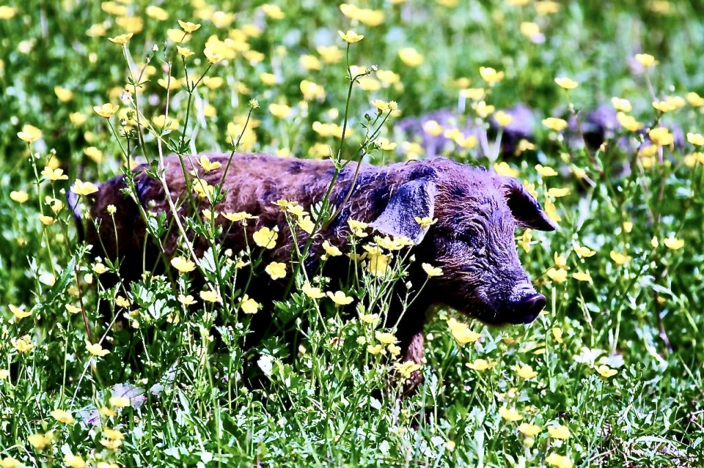 „Turopolje“-Schwein (fotografiert Mai 2008 im Naturpark Lonsjko polje in Kroatien. Gerade noch 40 Tiere gab es nach Angaben der Arche Warder im Jahr 1997!)