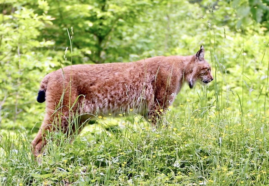 Die Verwandtschaft ist unbestreitbar. Dabei gehen Katze und Luchs seit 7,2 Mio. Jahren getrennte Evolutionswege. Wegen seines Pelzes gnadenlos verfolgt, galten Luchse bis vor einigen Jahren als ausgerottet. Nun ist der scheue Jäger mit den Pinselohren wieder zurück. Der Eurasische Luchs Lynx lynx, auch Nordluchs genannt, ist unsere größte heimische Raubkatze (…der vier weltweit vorkommenden Luchsarten, wie Kanadischer Luchs Lynx canadensis, Rot- Lynx rufus und Pardelluchs Lynx pardinus (= Iberischer Luchs; zur Unterart des Eurasisches Luchses zählen Karpatenluchs Lynx l. carpathica, Balkan- L. l. balcanicus und Kaukasischer Luchs L. l. dinniki (auch Caucasus lynx oder Eastern Lynx ) durch-streift als Einzelgänger große, zusammenhängende Waldgebiete. Vor mehr als 200 Jahren hat ihn der Mensch in BW ausgerottet (1770 wurde in Kaltenbronn/Schwarzwald der letzte Luchs erlegt). Er ist aber auf leisen Pfoten in den Süden zurückgekehrt. Die Katzen mit dem schwarzen Haarpinsel an den Ohrspitzen können in Wäldern und Wüsten, Sümpfen und Felslandschaften leben. Wenn es Nacht wird, jagen sie Hasen, Fische, Vögel und auch mal Hirsche. Deswegen mögen manche Jäger und Viehhalter sie nicht besonders. Da sie in der Natur immer schwerer ihre Ruhe finden und auch Straßen und Schienen für sie eine Gefahr sind, gibt es sie bei uns nur sehr selten.