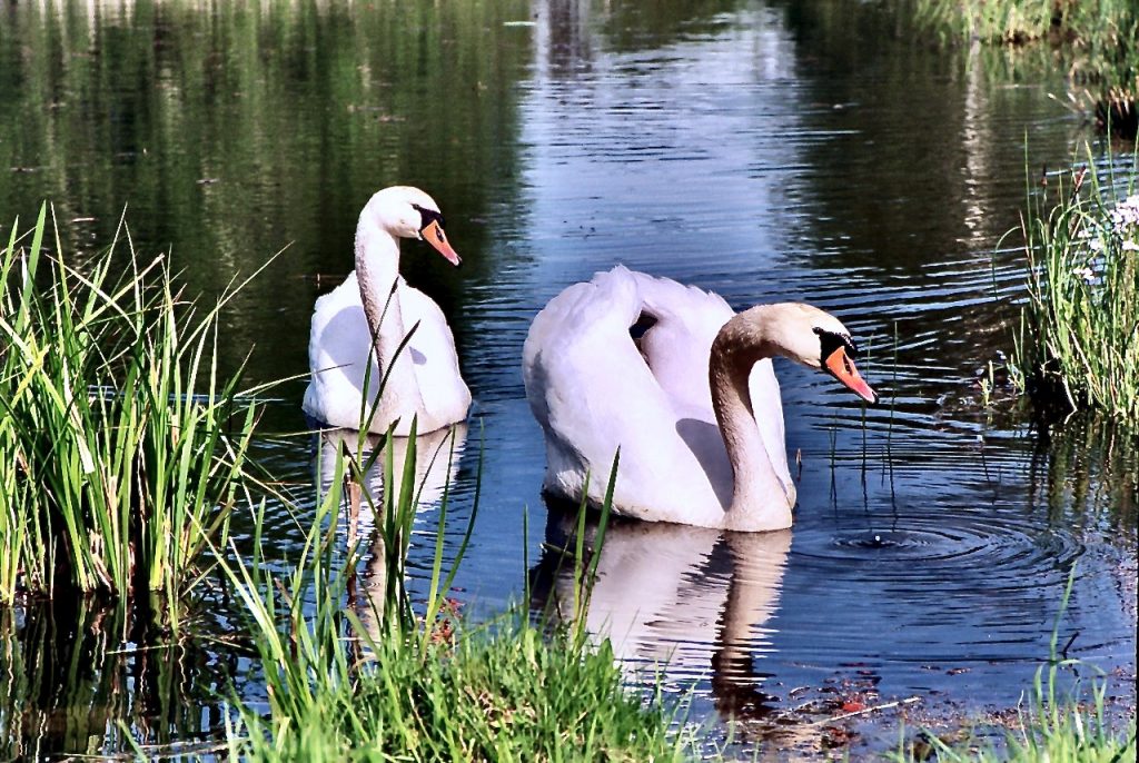 Gänse und Schwäne sind schwere Vögel, die deutliche Abdrücke hinterlassen. Am größten ist die Spur des Höckerschwans, die bis zu 20 cm betragen kann und im Durchschnitt ca. 16 cm beträgt. Beide Arten haben Schwimmhäute zw. den Zehen.