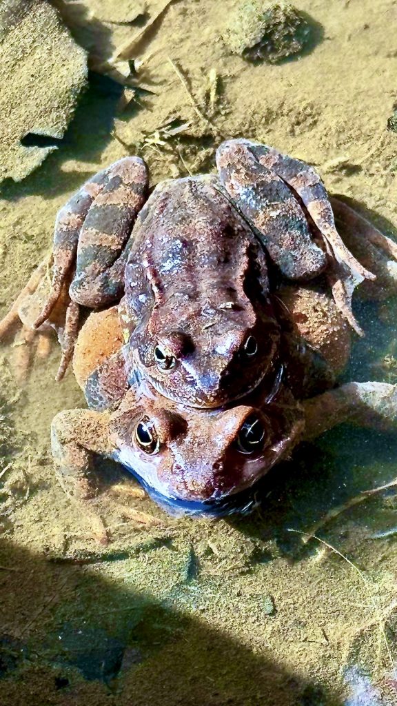Da Frösche ausgesprochen Ortstreu sind und zur Geschlechtsreife nach 2 – 3 Jahren möglichst an ihr Geburtsgewässer zurückkehren, sind oft schon wenige Laichballen der Grundstock für weitere Generationen. Anmerkung: Voraus-gesetzt, ihr Laichgewässer führt durch die Klimaerwärmung der letzten Jahre auch noch genügend oder überhaupt noch Wasser. Beim Gartenteich ist dies gewährleistet, allerdings sollte er fischfrei sein, denn nicht nur für Goldfisch