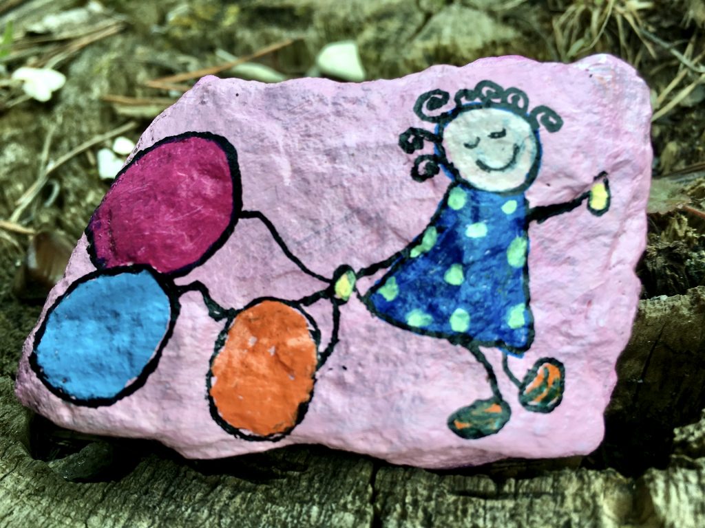 Bemalte Steinchen sind am Wegesrand des Steingesichter-Pfads allgegenwärtig.