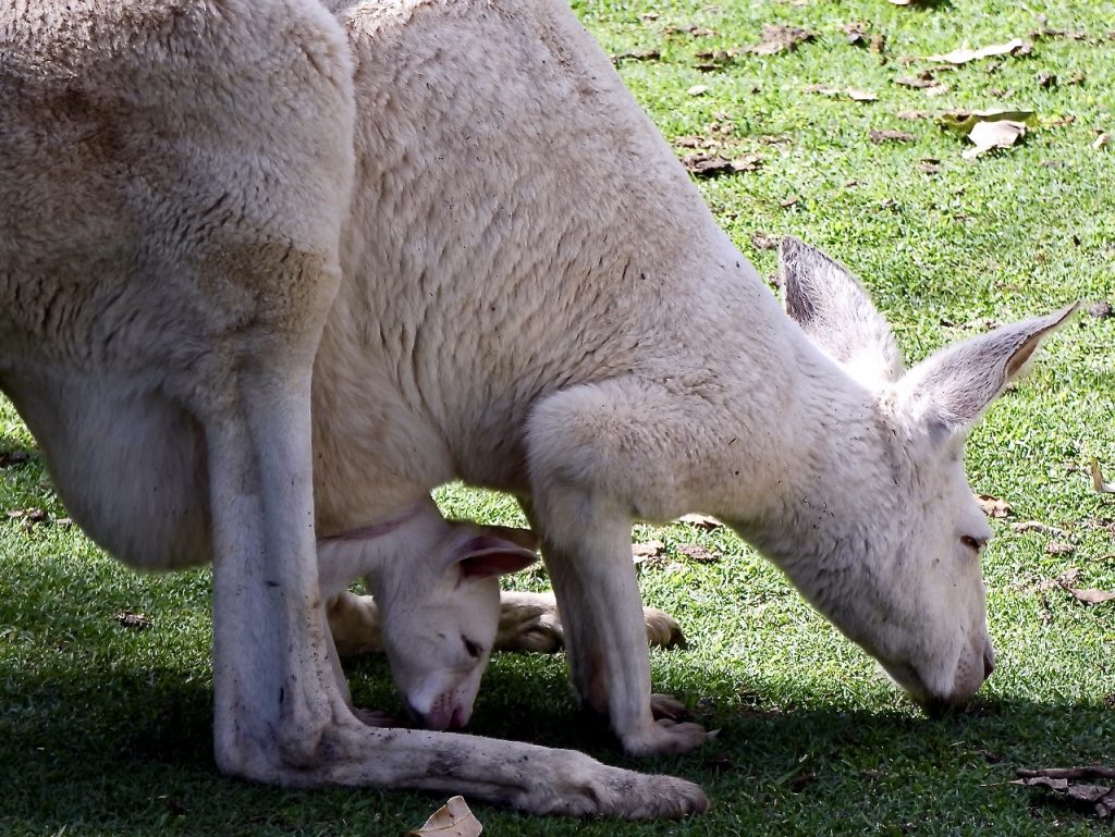 Babys im Beutel: Kängurus gehören zu den Beuteltieren. Bei ihnen ist die Schwangerschaft besonders kurz – sie dauert nur etwa einen Monat. Wenn das Baby geboren wird, ist es winzig klein, nur ungefähr 2 cm groß. Nach der Geburt krabbelt das Kängurubaby selbstständig in den Beutel der Mutter. Dort wächst es weiter heran und wird rund neun Monate lang gesäugt, bis es erstmals aus dem Beutel herauskrabbelt. Ähnlich läuft es bei den Koalas, die ebenfalls Beuteltiere sind. Hier verbringt das Junge die ersten 5 – 7 Monate im Beutel der Mutter.
